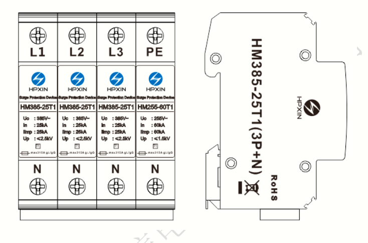 Nominal discharge current-In(8/20μs)25kA(L-N);60kA(N-PE)
